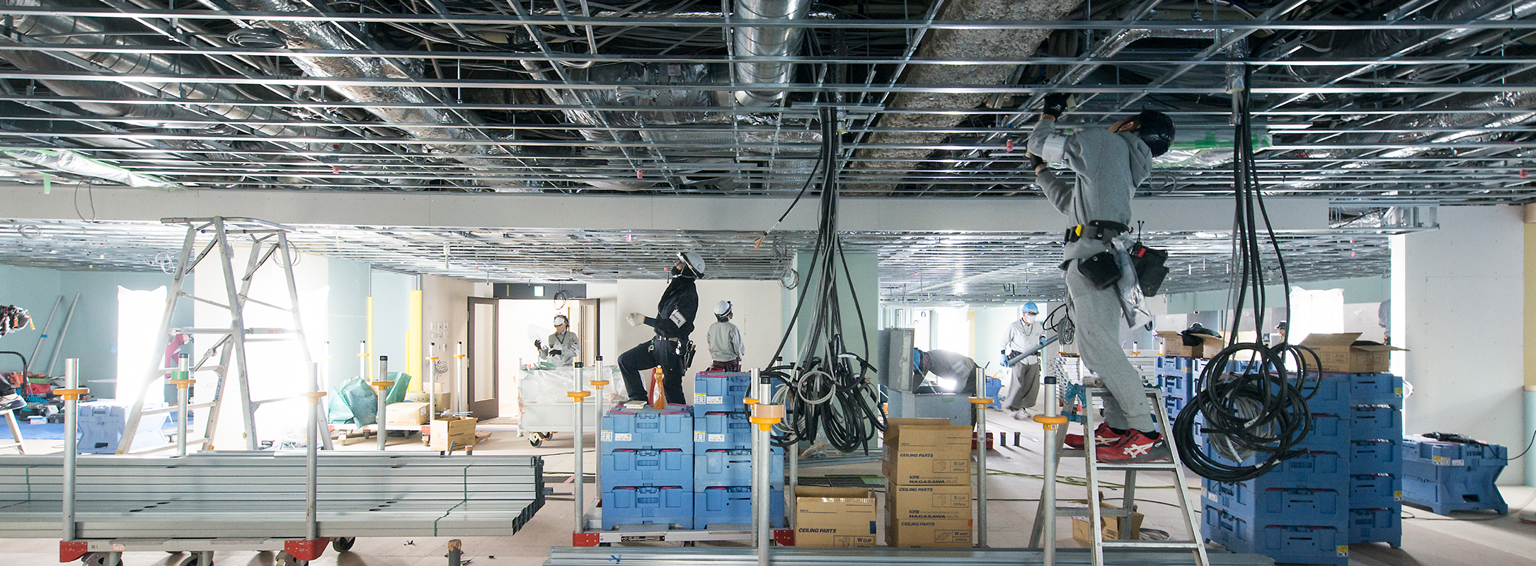 私たちは、内装工事のあらゆる工程を理解し、実践できるプロフェッショナル集団です。営業、設計、施工、品質管理、スケジュール調整までを一人ひとりが把握し、チームで連携しながら進行。窓口を一本化することで、よりスムーズで精度の高い施工を実現し、お客様の理想を確実に形にします。