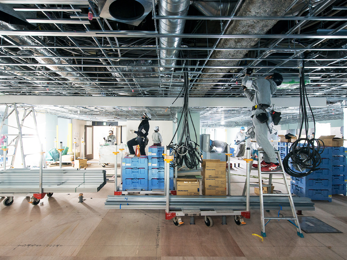 エス・バイ・ティでは、単なる施工管理ではなく、設計・工程管理・品質管理・安全管理・コスト管理まで、内装工事のすべてに関わります。